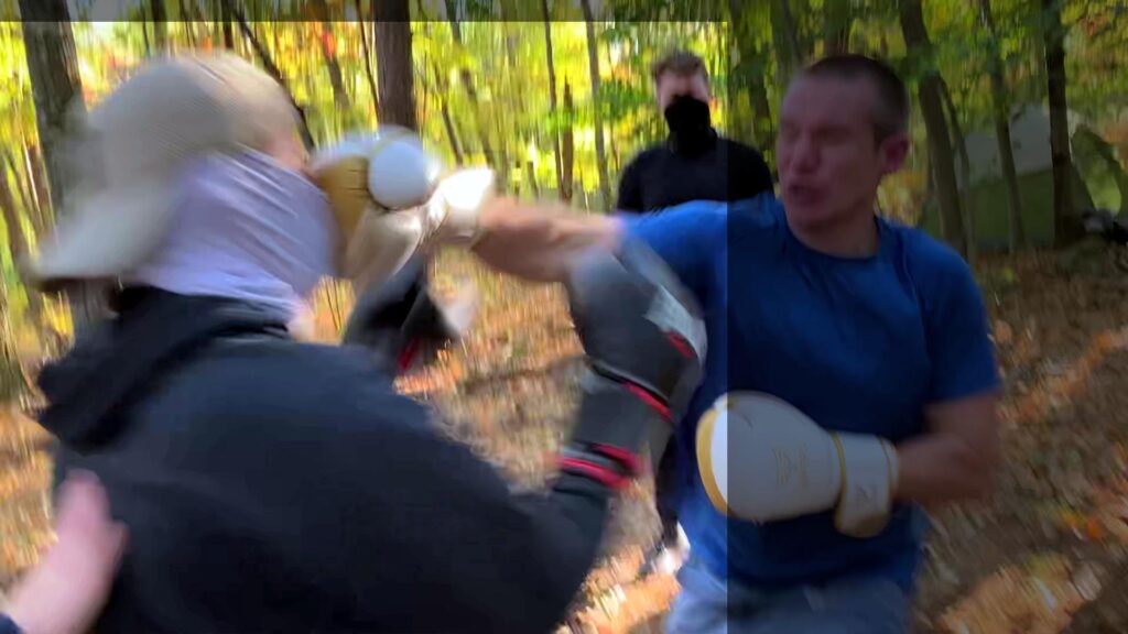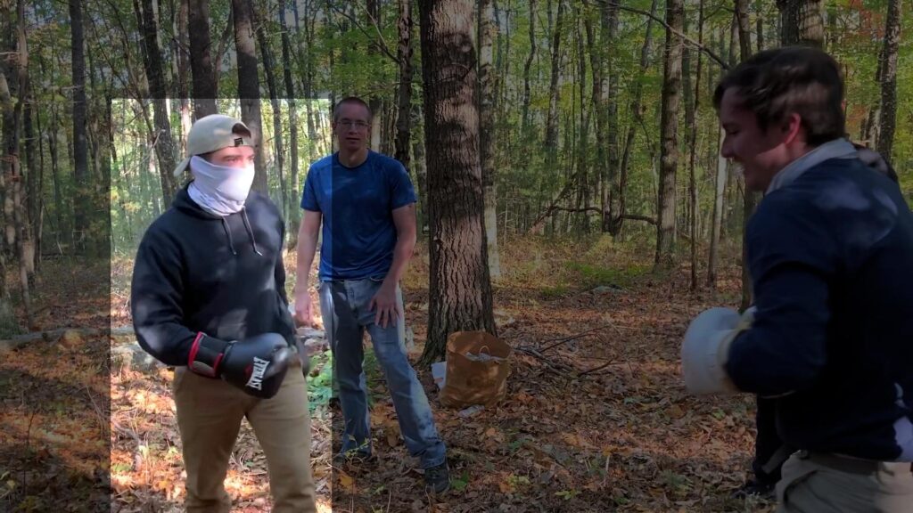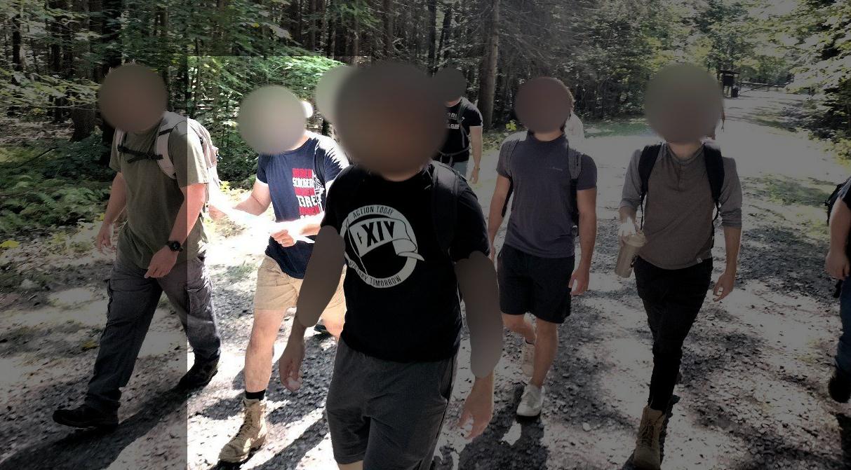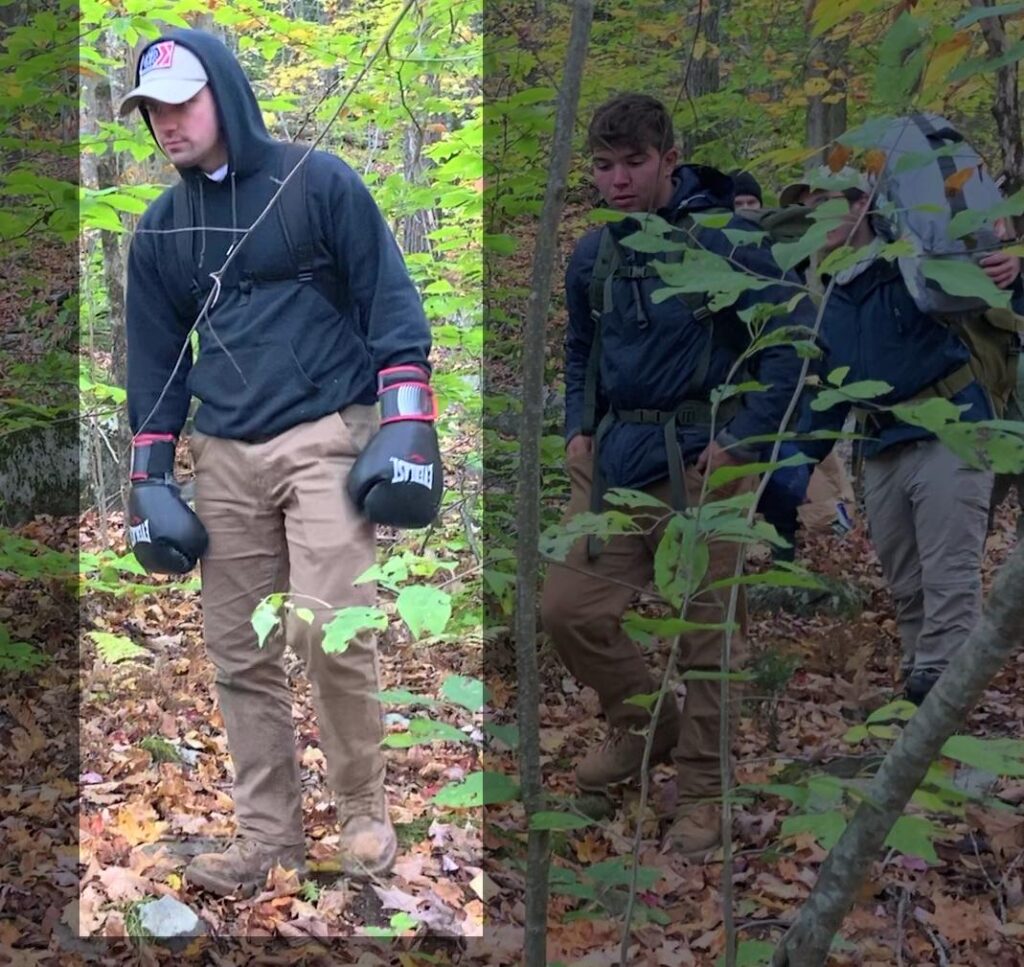 On May 5th, the Patriot Front Bitchute channel released a video of aggregated promat and training activities from late April. It included video of a hike and sparring session in New Hampshire. Hayden was present, and sparred with a member who appears to be Harwood and another unidentified member. [∗]