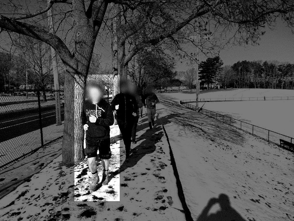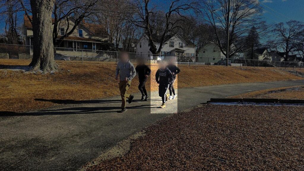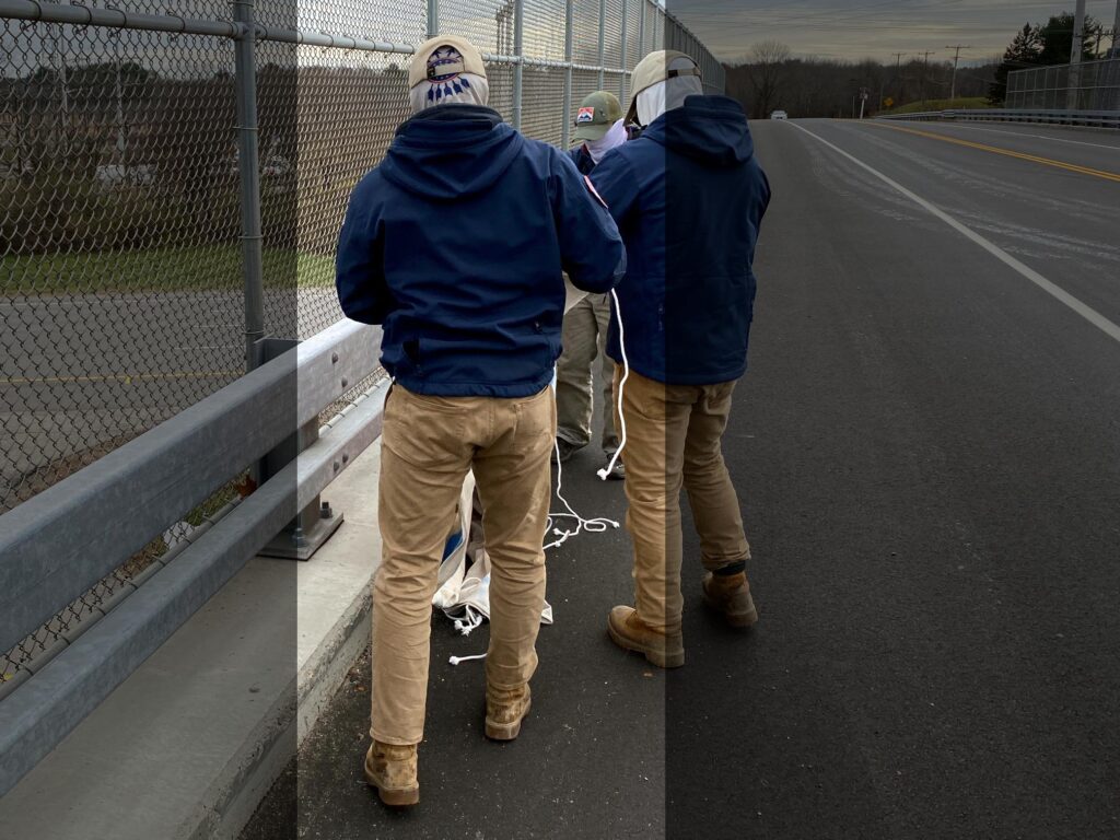 On February 1st, the Patriot Front Bitchute channel released video of a nationwide banner-drop event. The very first sequence of members traveling toward a banner-drop location is of NW7 on their way to the Arthur Fiedler Footbridge and the Mass Ave/Commonwealth Ave overpass in Boston MA. Hayden was likely an active participant at this event locally, and was recorded marching alongside Hood. [∗]