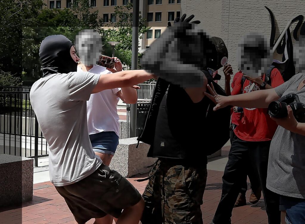 Hayden is an involved and highly active member in Patriot Front, having contributed to their social media presence through his “Patriotic Frontline” Gab account. Media of Patriot Front actions indicate he is physically aggressive, and willing to engage in violence against members of the public disinclined to quietly tolerate the presence of open neo-fascists.