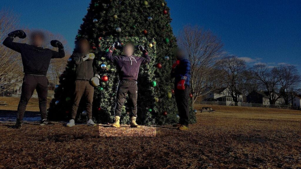 On December 15th, the Patriot Front Telegram channel released photos of NW7 members sparring somewhere in eastern MA, then laying flowers in Minute Man Park in Concord MA. Hayden was likely present, and seems to have spoken a few words at Minute Man Park. [∗]