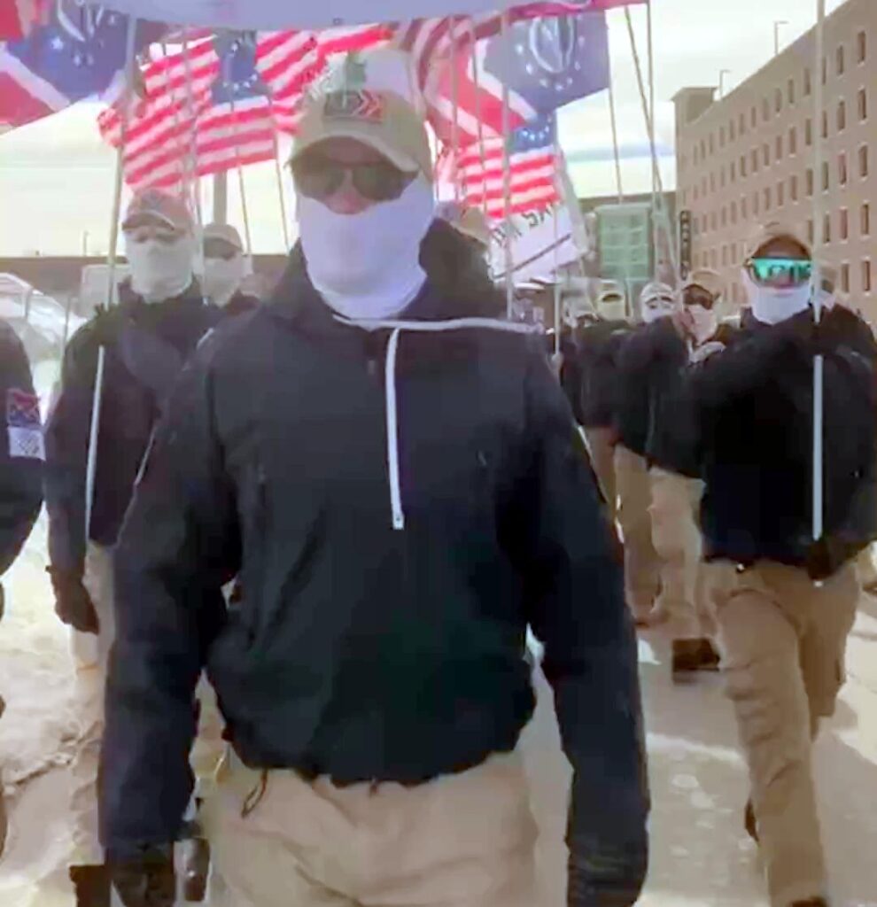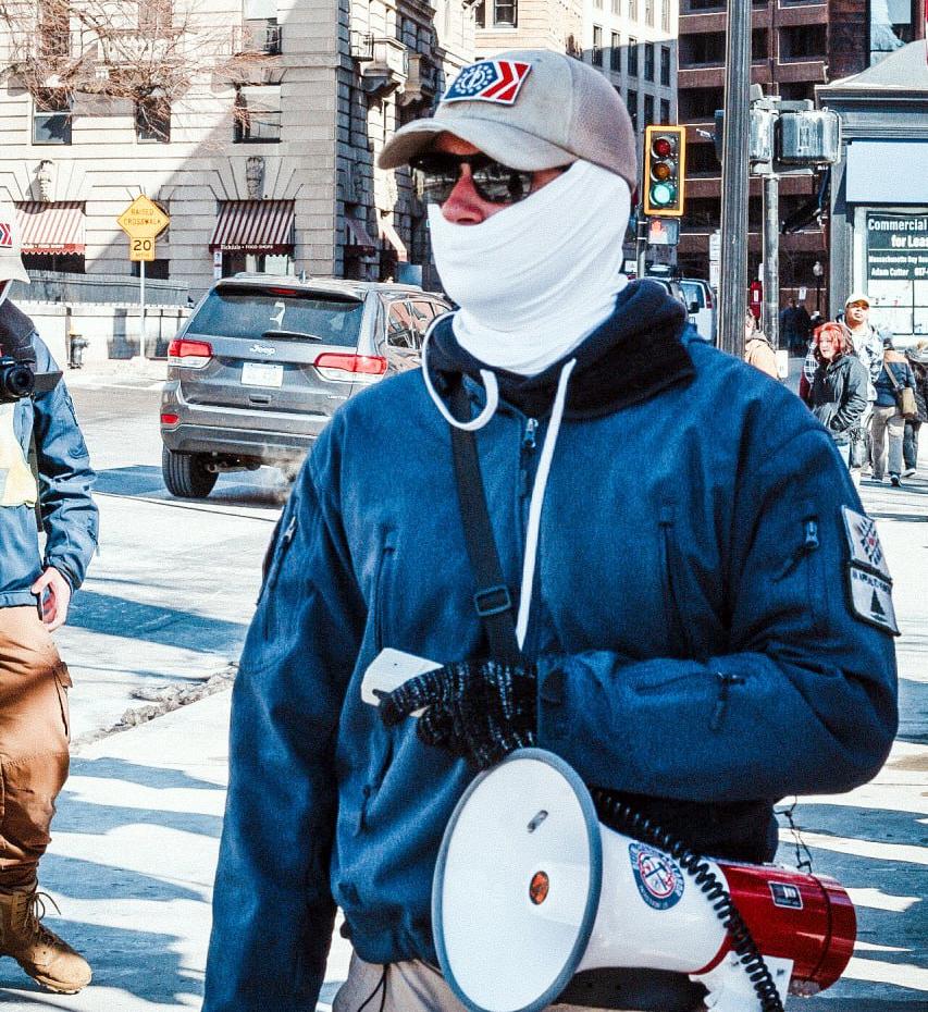 — Almost certainly Hayden while leading a Patriot Front march through Manchester NH, gotta ask what he means by “the forces of evil” here, February 22nd, 2025 [∗]