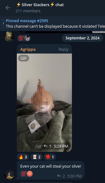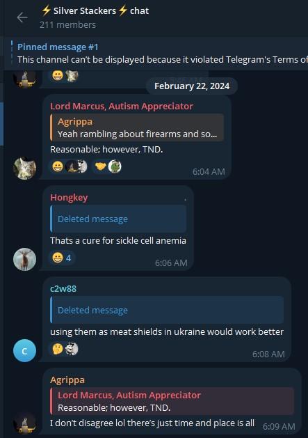 • Silver Stackers ⚡, a chat which seems to be a silver-collecting chat mainly attended by neo-Nazis.