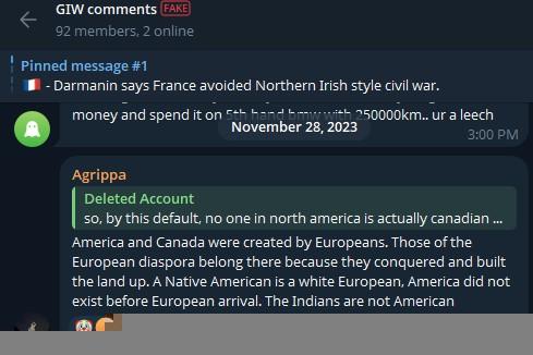 • Mugcake Group, which sounds innocuous in context, but was apparently created by groypers, featured rape jokes and neo-Nazi posts (including occasional usage of Hitler and Dirlewanger stickers), and eventually got overwhelmed by Russian bots.
