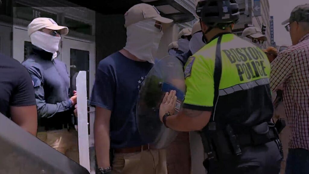 On July 2nd, roughly 100 members of Patriot Front held a flash rally and march in Boston MA. Behling was likely present, and apparently carried a shield while in Boston. During the march, several members assaulted local performer Charles Murrell III. Murrell, carrying a basket in one arm and holding his phone in the other hand, was assaulted by several members with shields, before the assault was broken up by law enforcement. Patriot Front would later release video of their side of the assault, which gives a much clearer view of members actively inciting the fracas with Murrell. Behling was not apparently involved in the fracas, but appeared to reflexively push back against someone who seemed to be an undercover officer when the man attempted to get Behling to step back by pushing at his shield. [Speculative: If I have my spot right, Joey Mugcakes’s energy is… timid? Nebbish, even? Especially when the cops start shoving PF guys to get them to back off. Like he realizes he’s way in over his head. The shove-back at the cop is weirdly half-hearted, and then he rejoins the pack like a guy waiting for his turn to get his ass kicked in a several-goons-versus-solo-martial-arts-hero fight. Goofy guy if I’ve got it right!] After the march, several members disembarked at Oak Grove station; many had staged their cars nearby, just over the Malden town line into Melrose. Behling’s car was recorded by local documentarian-activist & performance artist Rod Webber as one of many vehicles parked outside Oak Grove at the time. Behling also set an image of whom is apparently himself as his Telegram account profile image at some point. Behling, while not named in the later lawsuit against Patriot Front by legal firm Foley Hoag, is apparently one of the 99 John Does outlined in the list of defendants. [1] [2] [3] [4] [5]