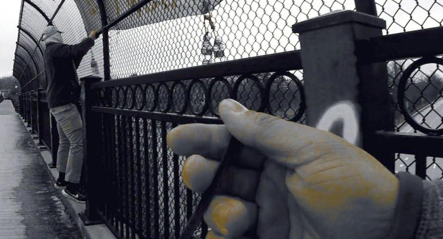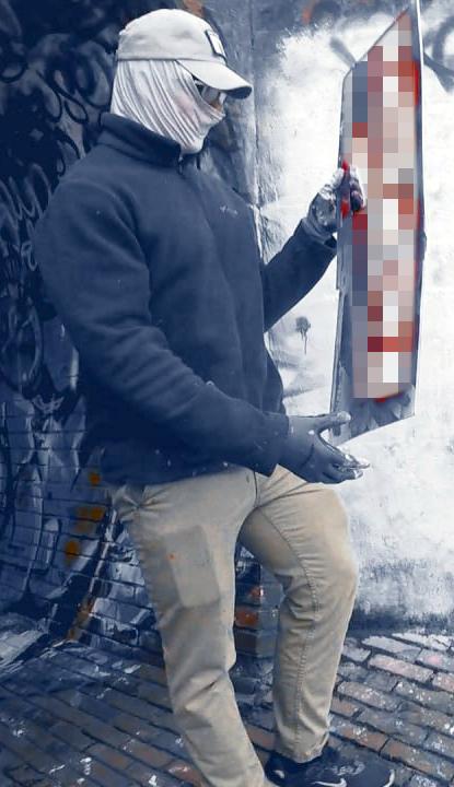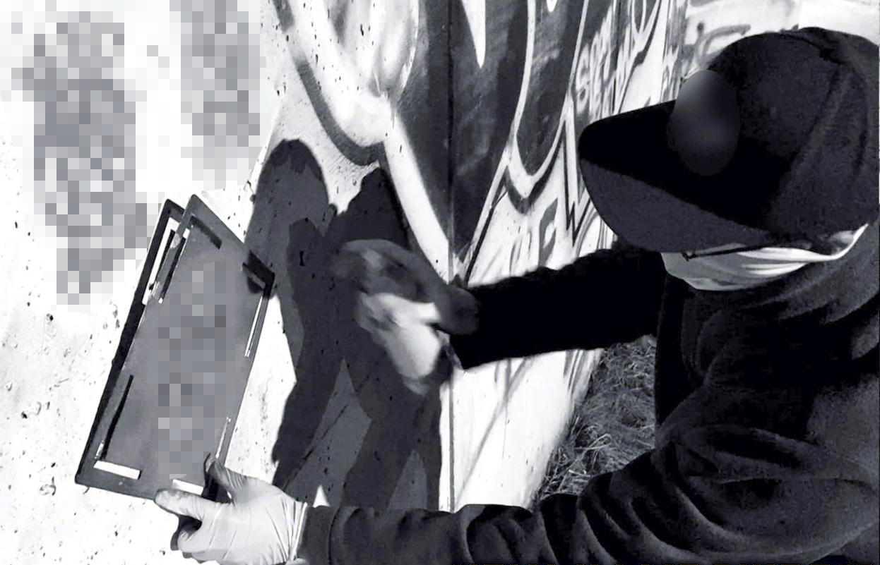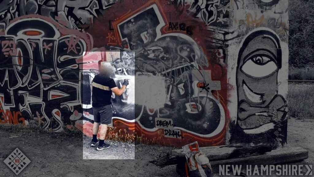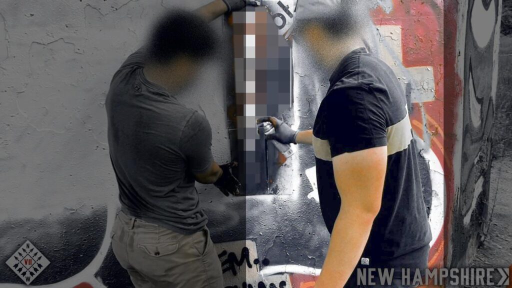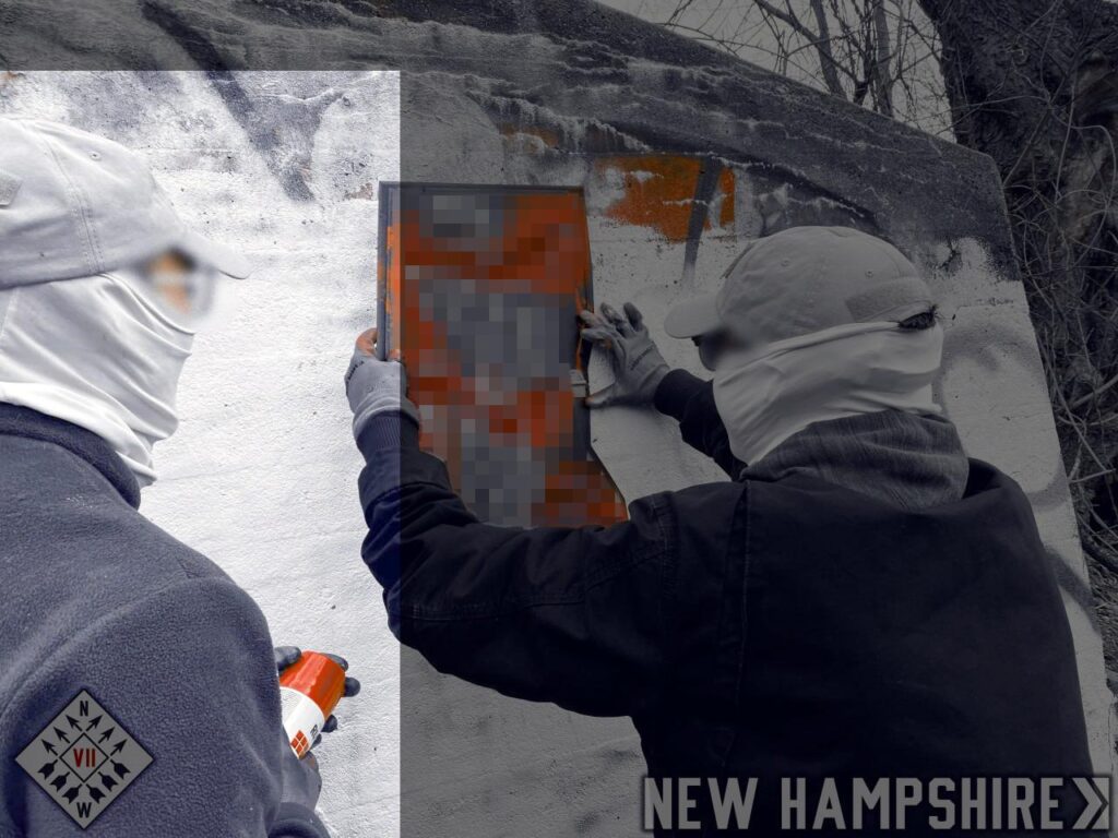 On September 15th, the Patriot Front Telegram channel released photos of NW7 members stenciling graffiti somewhere in Hooksett NH. Behling appears to be the sole member on camera during this event. [∗]