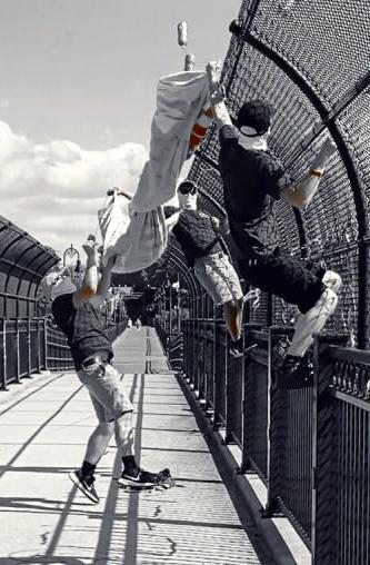 from left to right: possibly Behling (based off build and apparel, pictured jumping), Wyatt Trahan, & Jake Hayden, Manchester NH, October 2022