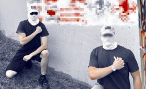 On December 23rd, the Patriot Front Telegram channel released photos of NW7 members stenciling graffiti somewhere in Manchester NH. Behling, face partly visible due to what appears to be a redaction error, appears to have participated. [∗]