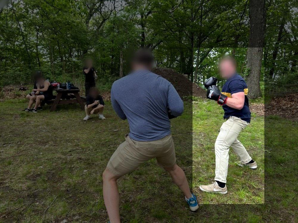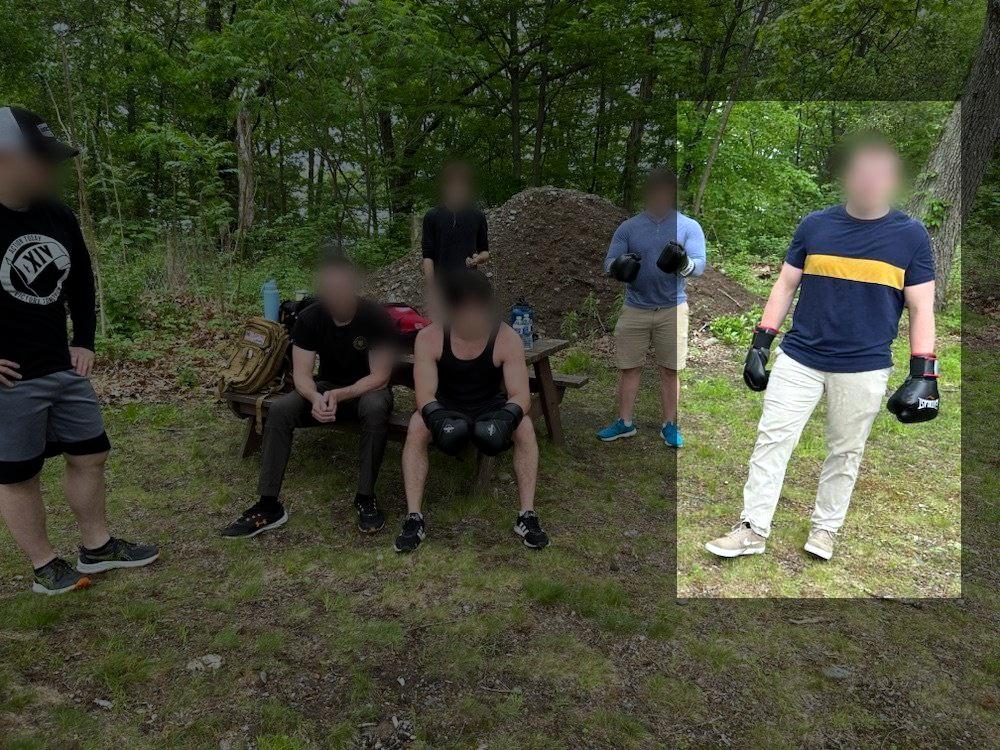 On January 1st, the Patriot Front Telegram channel released photos of NW7 members sparring in a park in southern NH. One of the members appears to be Behling. [∗]
