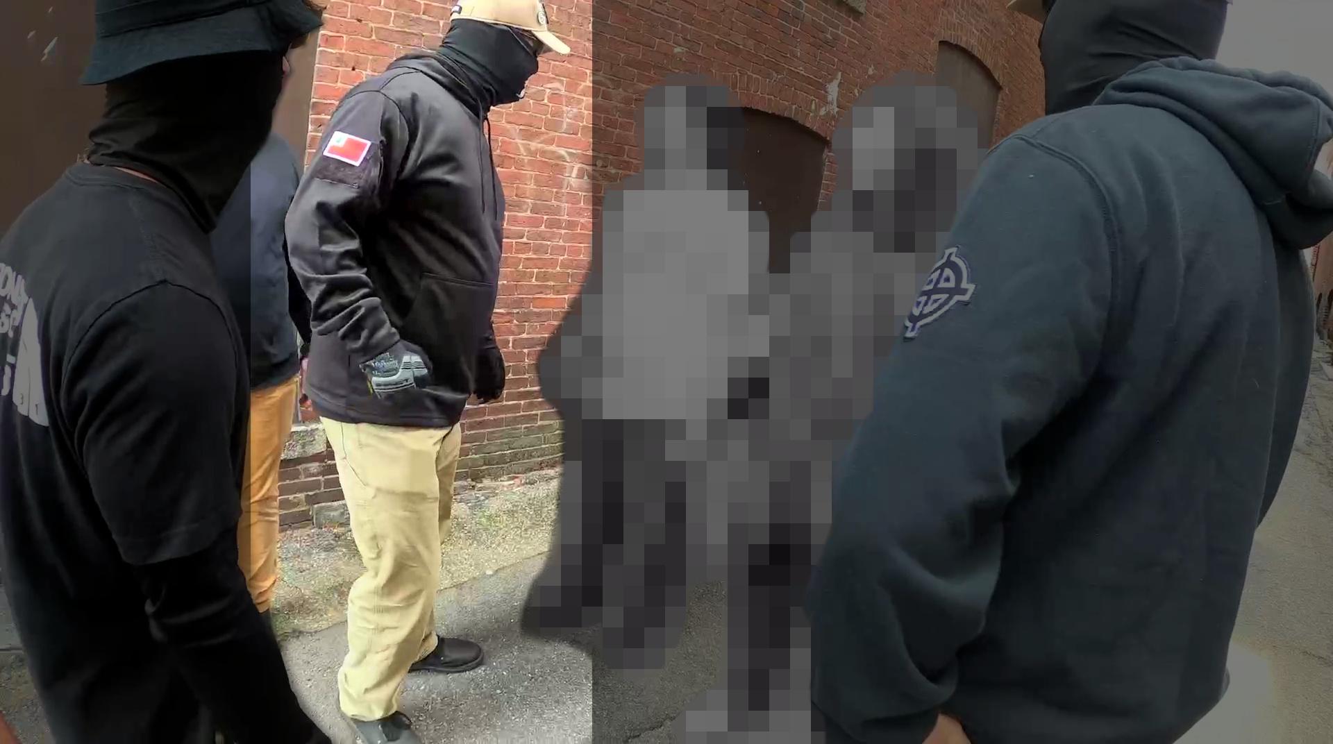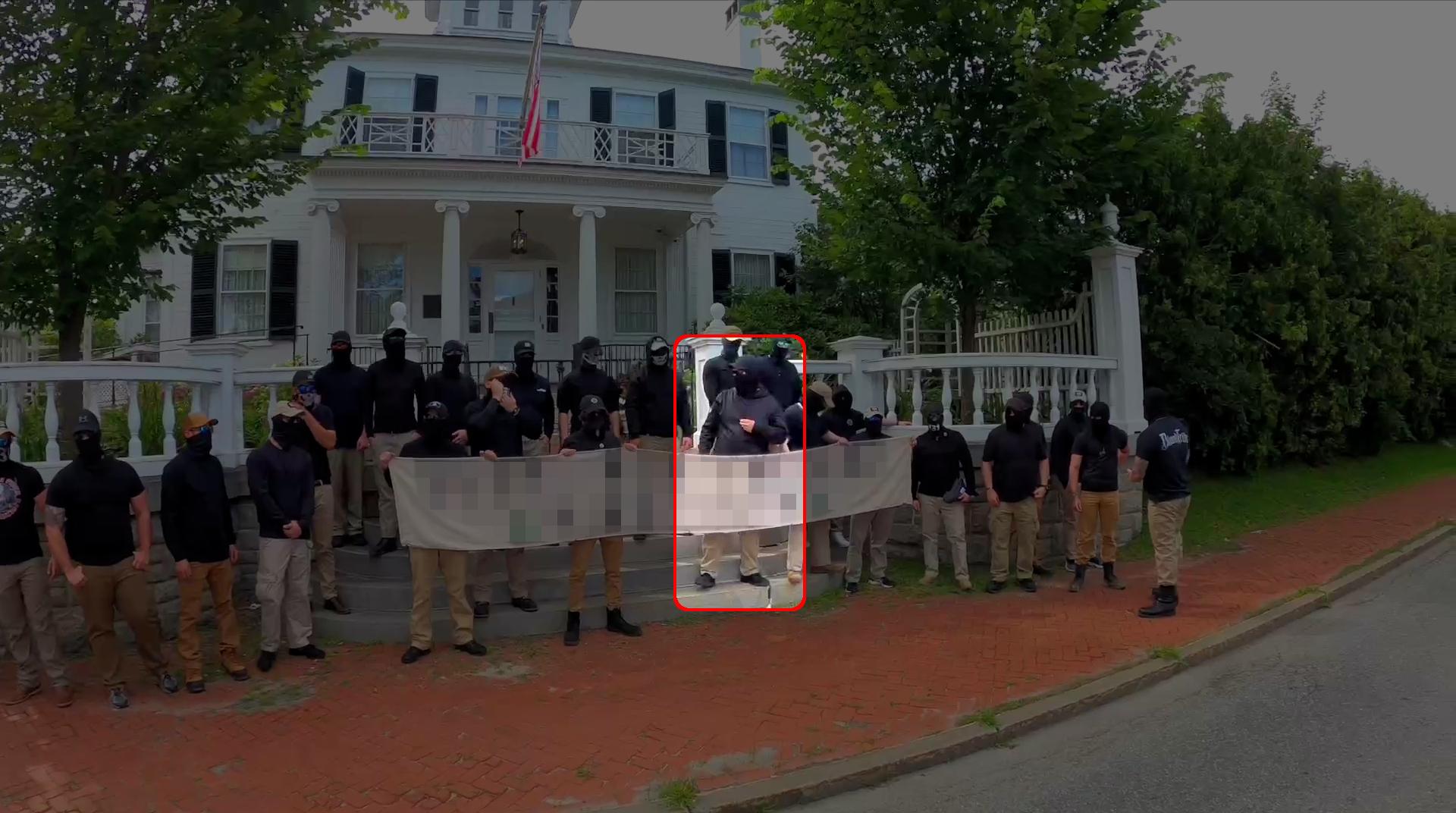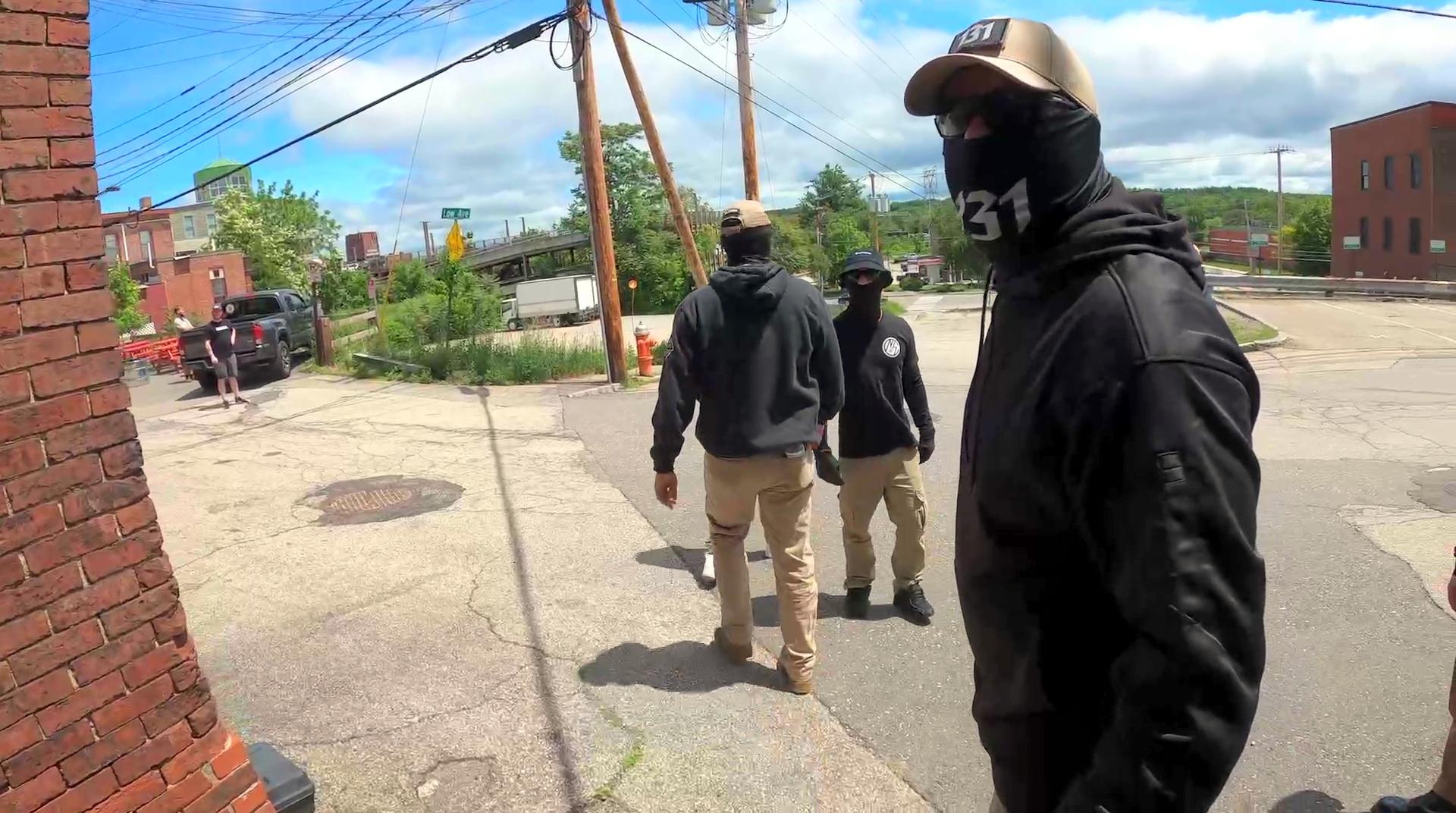On April 1st, members of NSC held a standout in Portland ME. At Portland City Hall, they were met with a trio of counter-protesters bearing a Pride flag with an antifascism emblem on it. Several members of NSC assaulted the counter-protesters after one tried to steal the Pride flag from one of the antifascists. Garcia was likely present, spending most of his time carrying NSC’s banner. While members carrying the banner did not apparently participate in the assault, video indicates they did reposition in order to occlude sight of the assault happening from the street. [∗]