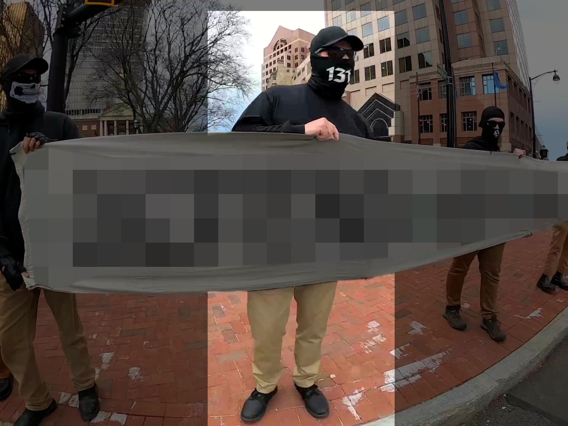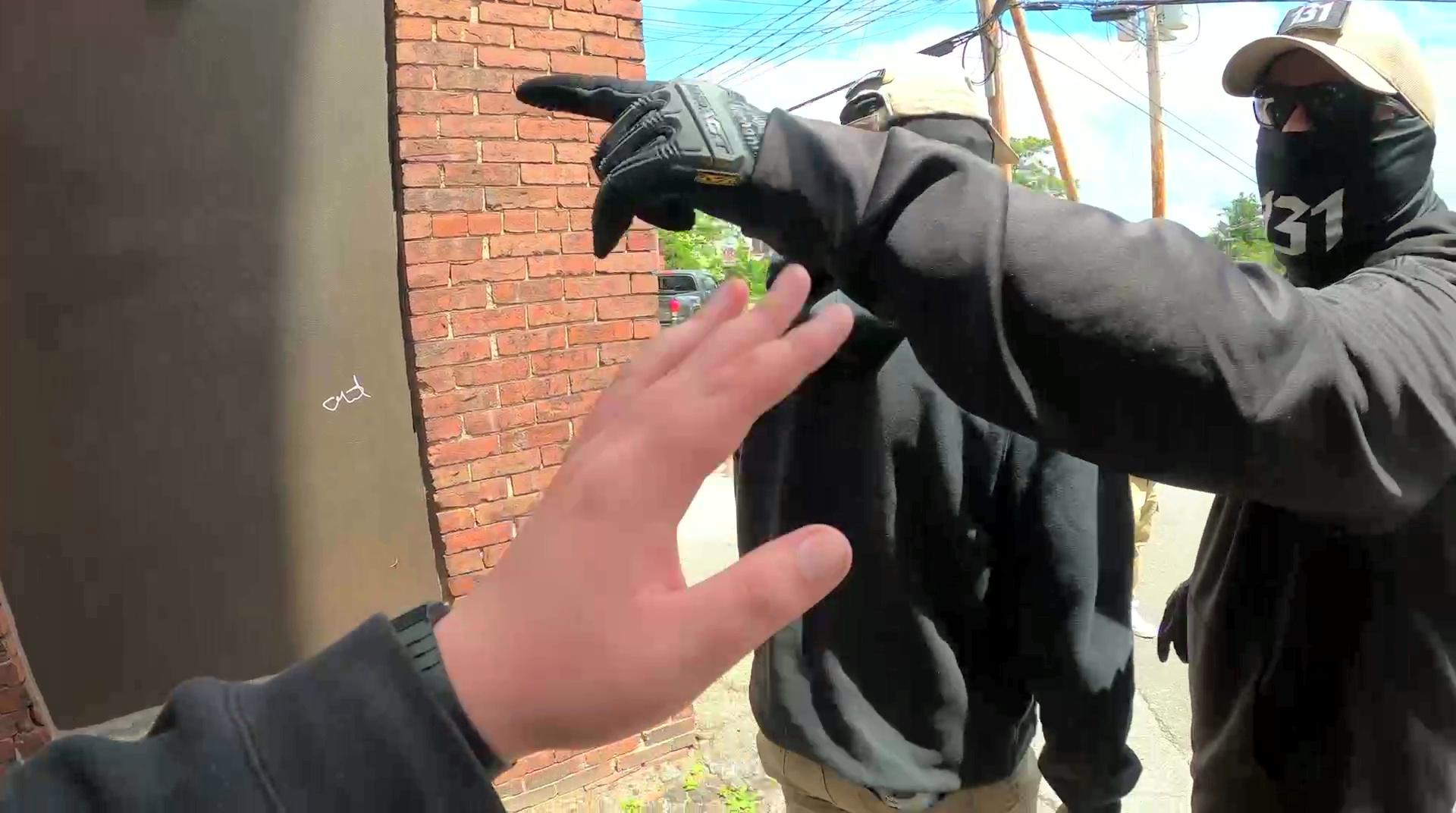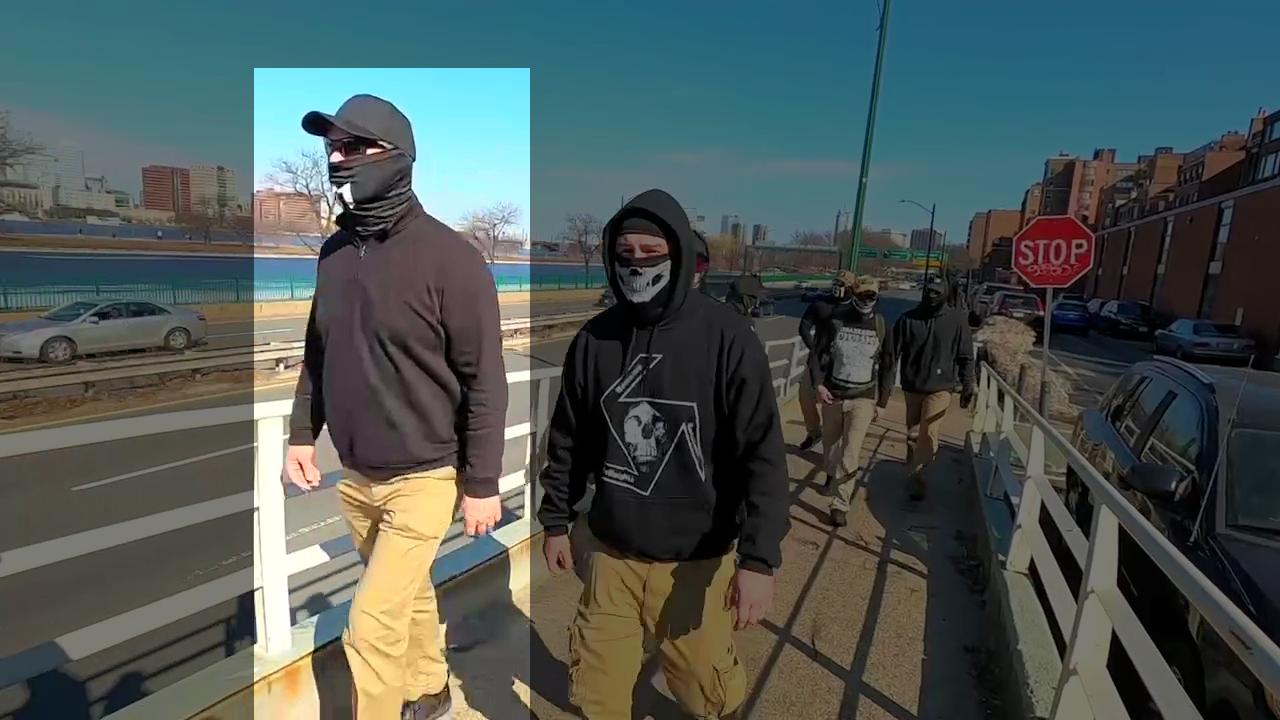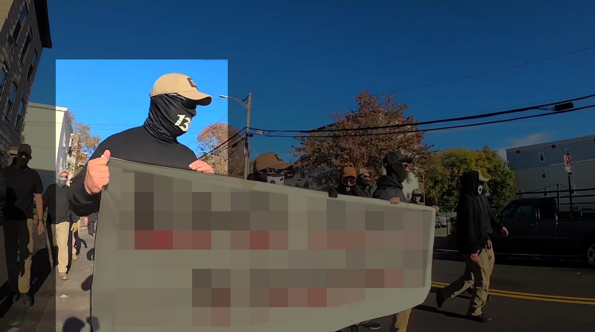 On April 1st, members of NSC held a standout in Portland ME. At Portland City Hall, they were met with a trio of counter-protesters bearing a Pride flag with an antifascism emblem on it. Several members of NSC assaulted the counter-protesters after one tried to steal the Pride flag from one of the antifascists. Garcia was likely present, spending most of his time carrying NSC’s banner. While members carrying the banner did not apparently participate in the assault, video indicates they did reposition in order to occlude sight of the assault happening from the street. [∗]