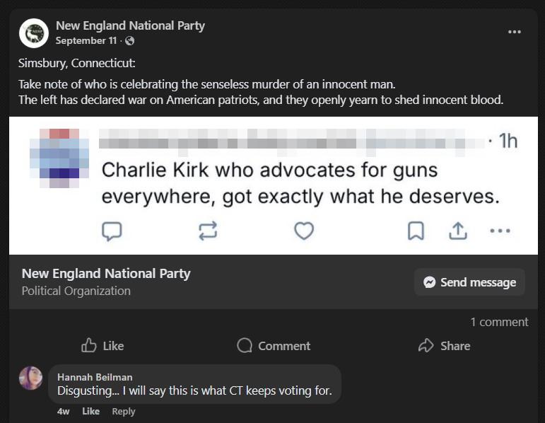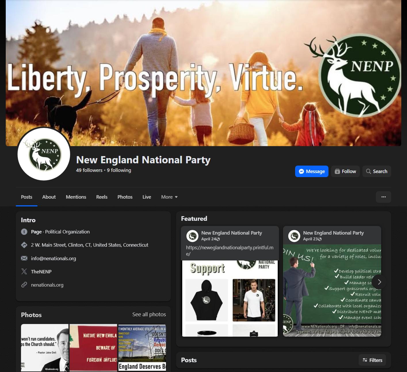 The New England National Party’s platform is kinda blood & soil. Its photo gallery and social media following have a handful of familiar faces and names, including someone I’m pretty sure is Patriot Front member Alex Beilman’s wife!