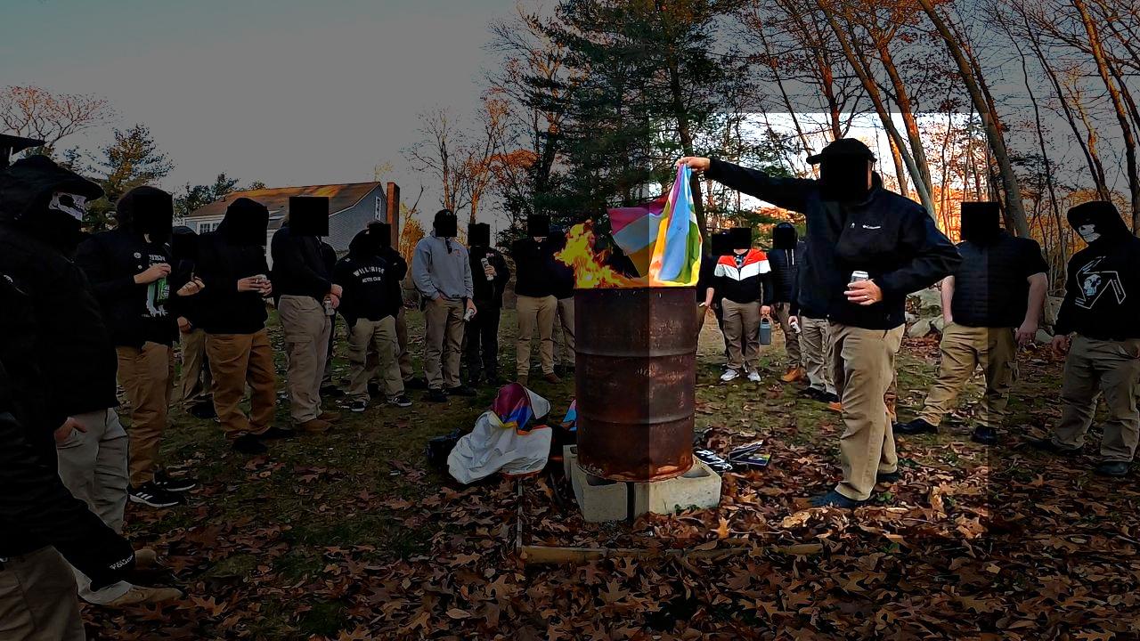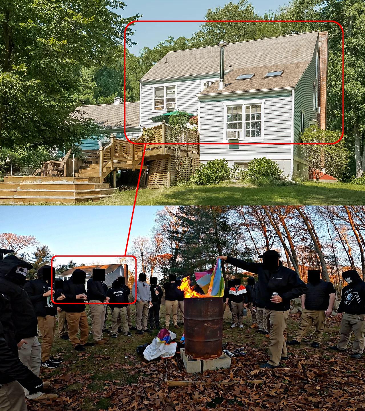 On November 18th, NSC-131 posted images of a “members ceremony” to its social media channels. Held in a home belonging to Garcia’s wife in Killingworth CT, members gathered, spoke, and burned captured Pride materials. According to Garcia: “My wife sat quietly upstairs while 40 guys chanted ‘n█████, n█████, n█████’ in her living room lol”. Someone who appears to be Garcia was photographed burning what seems to be a Pride flag. [∗] [⊗] [Speculative: His neighbors HAVE to know, right? There’s so little chance that they don’t, after this. Given both of them are or were apparently law enforcement officers, it would be completely humiliating if they didn’t know.]