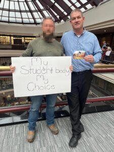 Sometime after October 2022, Gab user “Haegiff” set his pfp as images of Garcia at NSC-131’s standout in Lewiston ME. “Haegiff”, however, has also disseminated an image of someone who was allegedly himself wearing a skullmask half-face gaiter. This photo was of a young blond man with no significant resemblance to Garcia.