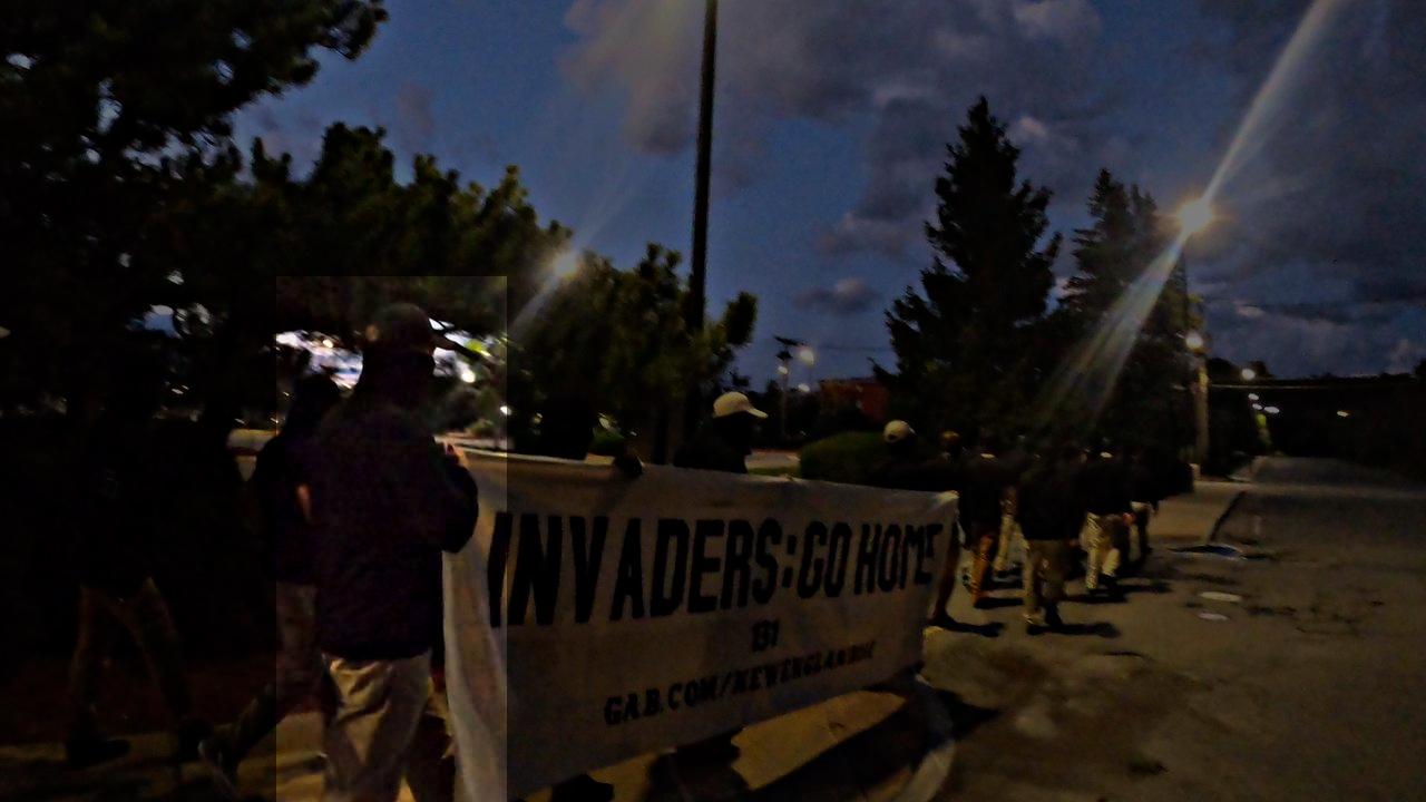 On October 2nd, several members of NSC marched and held a banner in Lewiston ME, calling for greater charges against Somali refugee Emmanuel Nkurunziza for his role in the murder of Donald Giusti, a white man. They were accompanied by Chris “Hammer” Pohlhaus, ostensible founder of the neo-Nazi group Blood Tribe and organizer of a failed ethnostate project in Springfield ME. Garcia was likely present. [∗]