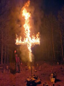 On or around September 25th, 2025, members of the White Landowners Union met for a cross-burning which they were insistent on calling a “cross-lighting”. The only attendee photographed bears a resemblance to Garcia via build and some apparel choices. [Speculative: An antifascist researcher reported to me that discussion around this event on social media included mention of how “cross-lighting” was a Scottish practice? Garcia goes on and on at times about how he’s descended from Scottish king Robert the Bruce.]