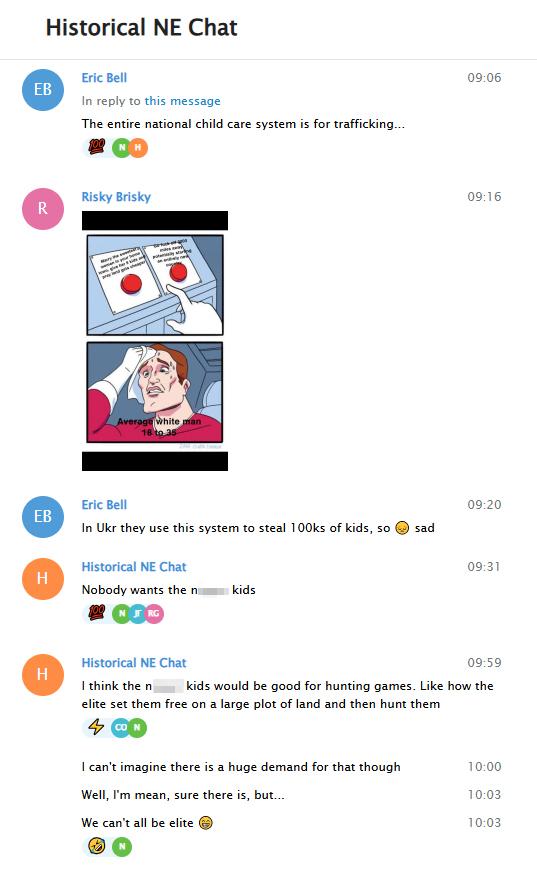 Hood: "This is the only chat on telegram dumb enough to let these r█████s hang out, in a public chat no less for Antifa to see