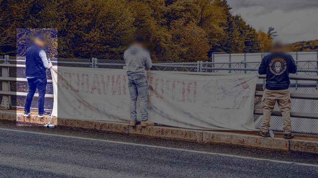 On January 5th, the Patriot Front released a series of photos of members hiking and conducting banner-drops in various locations in Maine. This included a banner drop from the Webster Rd bridge over I-95 North; Rosati was a possible participant. [∗]