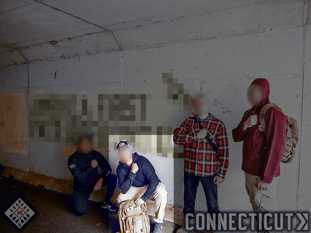 On January 3rd, the Patriot Front Updates channel released photos of members conducting several activities in New England. Rosati was present for two graffiti stencilings, one in Wallingford CT and the other in Rutland MA. [∗]