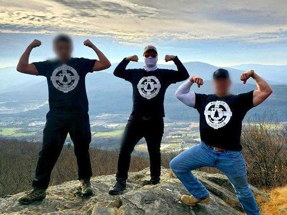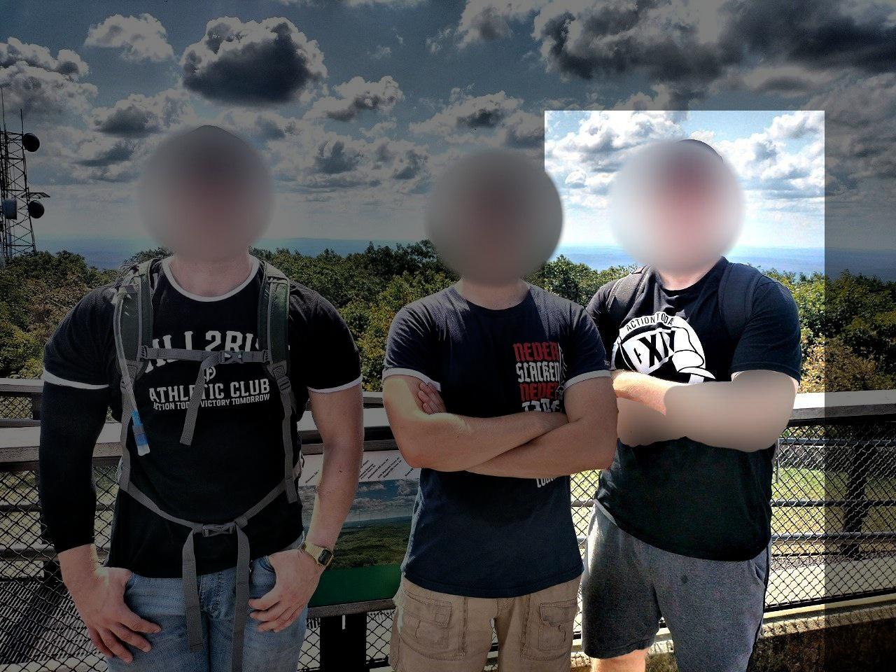 On September 15th, the Bay State Active Club released photos of members hiking Mount Wachusett, in the company of the Walkill Valley Active Club. Rosati, accompanied by a woman who appears to be his wife, was present. the Patriot Front Telegram channel later released their own versions of these photos during November. One of these included a photo of Rosati with his tattoos edited out, the skin of his arms made to look unmarked. [∗]